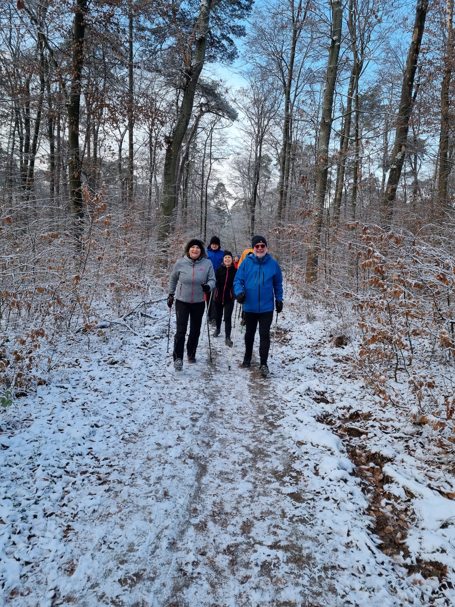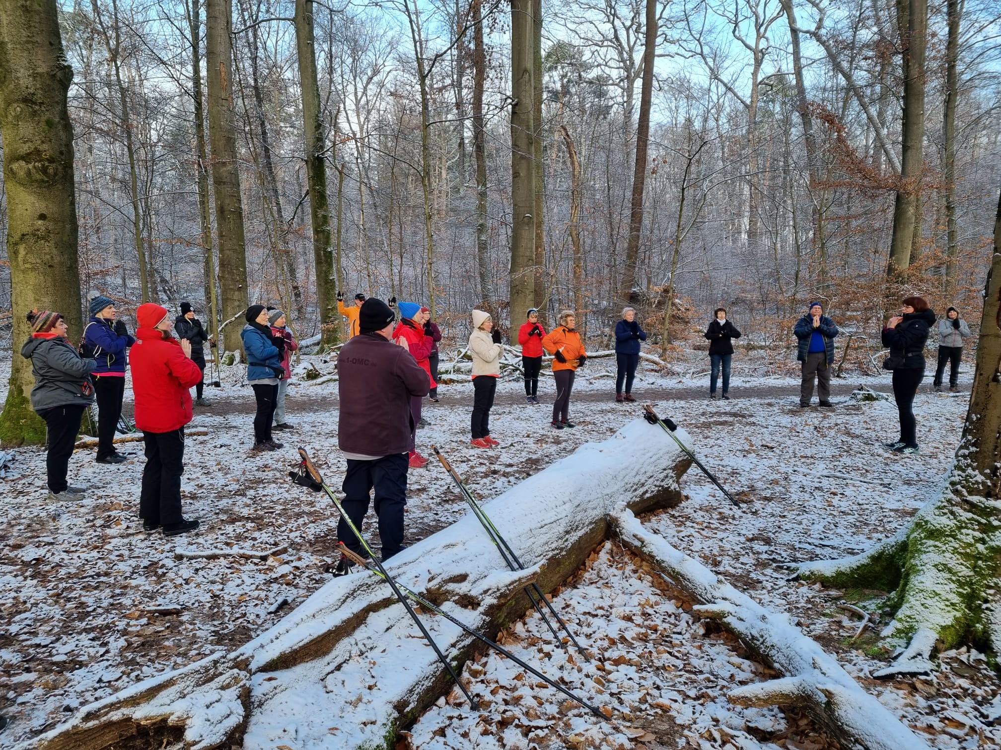 Nahezu 30 Mitglieder folgten dieser Einladung und es ging in zwei Gruppen bei leicht sonnigem Winterwetter auf zwei Strecken durch den vom Schnee leicht überzuckerten Wald.