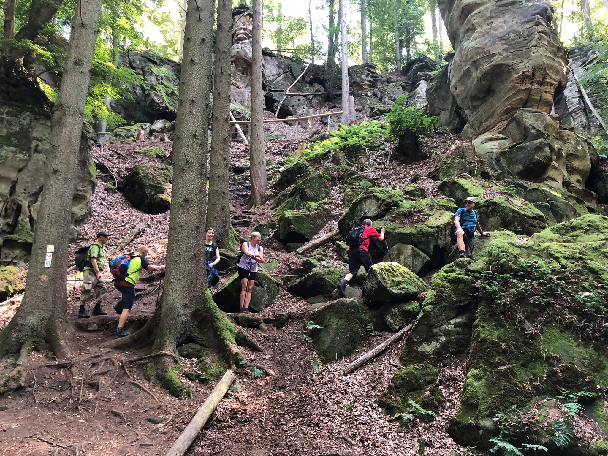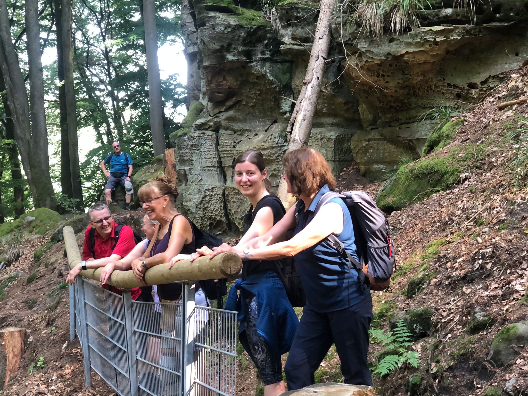 Am 9. und 10. September führte der jährliche Wanderausflug der Mittwochsgruppe "Fitness für Sie und Ihn" in die Nähe von Trier, wo  zunächst am Samstag eine Wanderung in der Teufelsschlucht auf dem Plan stand. Der felsige Weg, die "Teuflische Acht", war herausfordernd und führte über viele Stufen und Steine. Dafür warteten an jeder Ecke tolle Ausblicke über das Tal oder auf mystische Felsformationen. Auch ein verdientes Picknick zwischendrin durfte nicht fehlen.