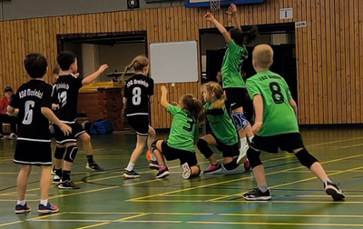 Heute waren alle jungen Wilden dabei. Wie immer gingen sie hochmotiviert auf die Platte und hatten einen guten Start im 4 gegen 4, sodass die zahlreichen Zuschauer schnell die ersten Tore bejubeln konnten. Die Trainervorgabe, sich heute mehr auf die Abwehr zu konzentrieren, wurde größtenteils gut umgesetzt. Aber auch die Torwürfe werden immer besser. Auch schön zu sehen, dass der Ball immer besser in den eigenen Reihen durchgespielt wird. Doch durch Unkonzentriertheiten im Spielaufbau brachte man den Gegner immer wieder zurück ins Spiel. Am Ende war es ein knappes, aber unterhaltsames Spiel. Die Trainer freuen sich sowohl über die Entwicklung als auch darüber, mit wieviel Freude, aber auch Ehrgeiz die Kinder dabei sind und von Eltern und Familie dabei unterstützt werden. Danke dafür.