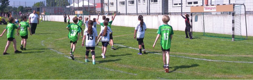 2:1 zur Halbzeit. Relativ souveränes Spiel in dem man schon hätte 4 oder 5:1 führen müssen. Man scheiterte aber immer wieder am guten Torwart des Gegners oder warf einfach zu unplatziert. Apropos Torwart, die Trainer hatten somit keine Gründe in diesem Spiel zu tauschen und beließen Alex im Kasten. Doch auf einmal war die Luft bei unseren Mädels und Jungs raus, selbst ein 7m wollte nicht ins Tor. Am Ende stand somit eine deutliche 2:8 Niederlage zu Buche und somit ein 6. Platz von insgesamt 8 Mannschaften. Wir finden, darauf lässt sich aufbauen und wir sind sowieso in einer Lernphase.