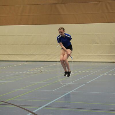 Anschließend wurde noch der Double Under Cup ausgetragen, bei dem unsere Mädels nicht an den Start gingen. Mit etwas Verzug startete im Anschluss der erste von vier Freestyle Durchgängen. Den Anfang für Bieber machte Marie in Durchgang 2. Sie konnte bei Ihrer ersten Teilnahme auf hessischer Ebene einen guten Freestyle zeigen und zufrieden von der Fläche gehen.