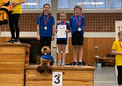 Im Team-Wettkampf freuen wir uns über 2 Medaillen. Amy, Elisabeth und Finja belegen Platz 3 von 10. Jule, Luisa und Marie freuen sich über den 2. Platz in einem Teilnehmerfeld von 7 Mannschaften.