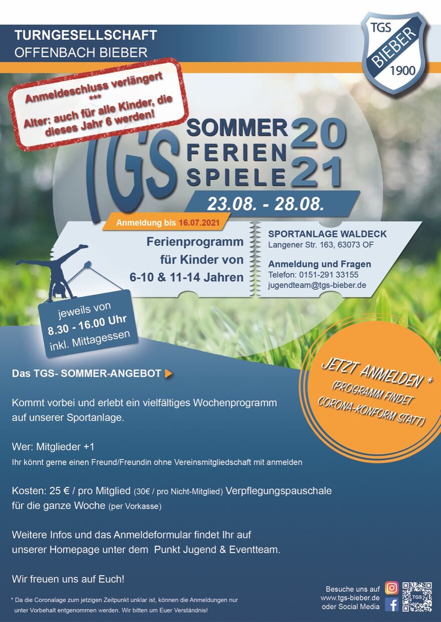 Hier gehts zur Anmeldung und weiteren Infos: TGS Ferienspiele
