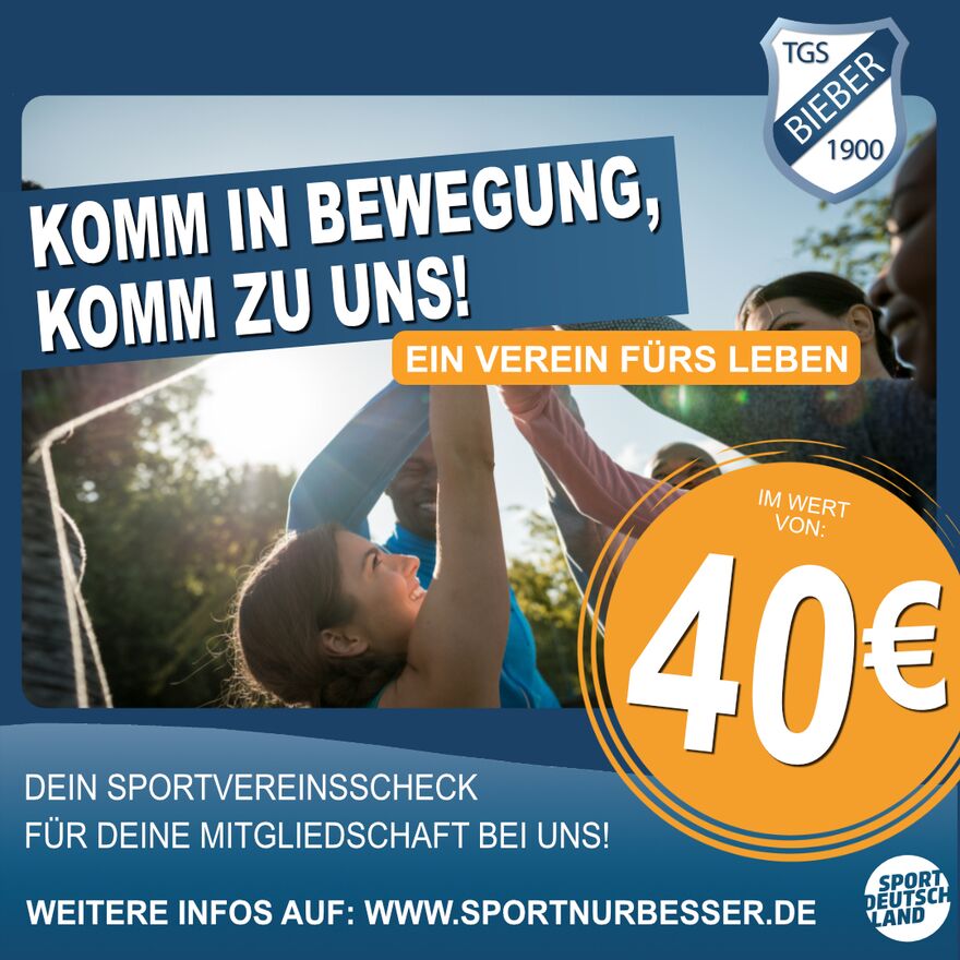 Was musst du tun: Sichere deinen Sportvereinsscheck unter www.sportnurbesser.de und reiche ihn zusammen mit deinem Mitgliedsantrag bei uns ein.