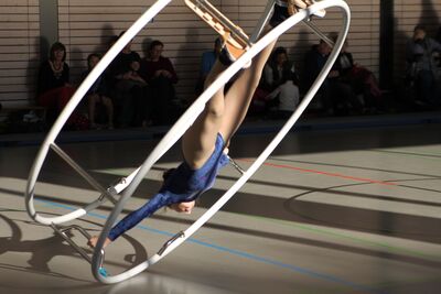 Für alle mutigen Kinder ab 6 Jahren und entsprechender Körpergröße (wg. der Greifhöhe im Rad), die eine gewisse Körperspannung und Turnerfahrung haben, ist das Rhönradturnen geeignet. Ein Handstand sollte für einen Anfänger kein Problem darstellen.
